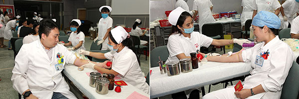 医院各条线业务非常繁重,大家都是千方百计挤时间来献血。不少医务人员趁着早交班的时间匆忙赶来,有些门诊医生抽了个空档小跑赶来,有些医生利用手术间隙的小段时间直奔现场,抽完血之后大家又迅速赶回各自的医疗岗位。有些护士刚下完夜班拖着疲惫身躯前来,献完之后又心满意足地离开。当得知广州近期用血紧张时,有103人一次捐献献400ml,72人捐献300ml。现场更有职工提出医院应该多组织些,“照顾”那些经常因忙碌错过献血的人。