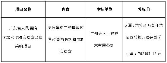 广东省人民医院PCR和TDM实验室改造工程竞争性谈判结果公告