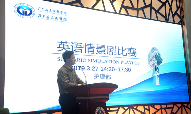 比赛开始前,林展翼副院长用英语跟大家进行了亲切的互动,并在讲话中指出:很高兴也很支持护理部组织这样的比赛。口语很重要,要说好口语也很难,在说的过程中要注意语音语调,不同的语调表达的情感不一样,除此之外,我们还要注意说英语时的节奏,并不是越快越好,应该准确拿捏。希望此次比赛营造一个良好的学习氛围,能有更多的护理人员走进国际舞台。最后祝大家赛出水平、赛出风格!