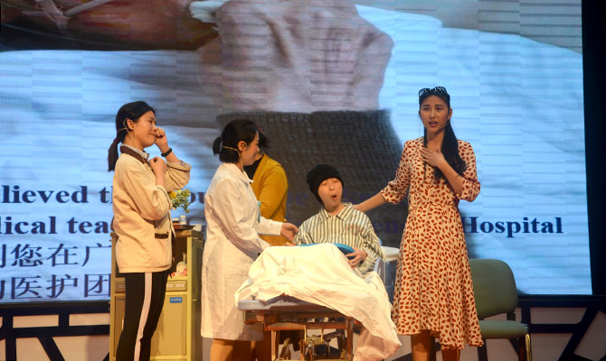 自编自导的短剧同样也是精彩纷呈。短剧均来源于实际临床工作,内容丰富多彩:东病区《春风十里不如一路有你-护声护述》、心研所《超模变形记》、心研所《将心比心,心移有信心》、综合临床《YOU RAISE ME UP》、大内科《我们是一家人》、心研所《点亮心路》、大外科《诊室奇遇》、大内科《午餐风波》、平洲片《我想见她》。选手们全英文的向大家讲述了护理人的情怀、诠释了护士的爱岗敬业;展现了省医护理工作的专业水准;舞台上有医患携手接力生命让爱延续的感人肺腑,也有医患密切合作与小乌龟斗智斗勇的妙趣横生,精彩的演绎迎来观众及评委的阵阵掌声。最后比赛在综合临床片《YOU RAISE ME UP》的唯美歌声中落下帷幕。