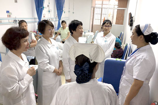 结束了上午的义诊,护理专家们又继续深入病房进行住院患者的护理查房和指导工作。护理部陈凌主任、申铁梅副科长、黄淑萍护长、及余红春护长在博罗县人民医院心内科及博罗妇幼保健院进行帮扶回头看的座谈会,深入了解基层帮扶工作的需求及效果。康复专科的李绣球护长在神经内科亲自指导患者下床活动,并将早期康复的理念传授与当地医务人员;老年专科徐永能护长在老年科进行了安宁疗护的专题讲座及现场示范;造口专科洪涛老师马不停蹄地赴呼吸科、内分泌及ICU会诊了3例特大压疮的患者,并且互留了联系方式,方便今后的指导和跟进。 协和中心的柳颖护长为博罗县人民医院进行了优质护理服务的专题培训,使以顾客为中心的优质护理理念在基层护理人员心中生根结果。