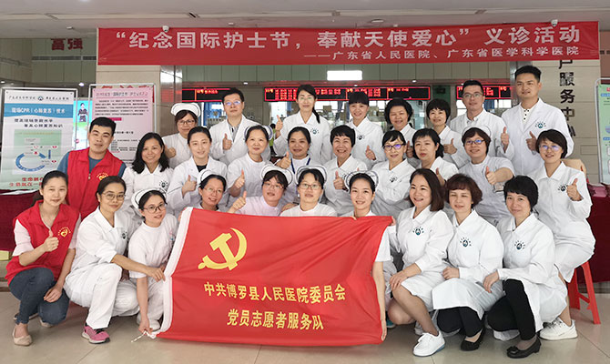 为纪念和庆祝国际护士节,弘扬南丁格尔救死扶伤的人道主义精神,2019年4月26日,护理部组织10余名护理专家到我院定点帮扶的博罗县人民医院及博罗妇幼保健院进行“纪念国际护士节,奉献天使爱心”为主题的大型义诊活动及下沉帮扶回头看活动,将专业的慢病管理、康复护理、老年护理及安宁疗护送到基层百姓家门口。