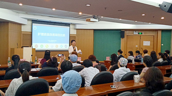 各科室能以患者为中心,针对临床护理工作中发现的问题,持续改进,解决患者健康及护理管理等问题,分享护理质量改善成效。全院各片区推选了20多个改善项目参加比赛,经过初审筛选,共有19个项目参加决赛。各项目组汇报人精神饱满,语言流畅,幻灯片精心制作、图文并茂,汇报主题涉及面广,质量改进工具应用恰当,制定对策重点突出,对策实施具体有效,效果确认科学合理,改进成效显著提升。