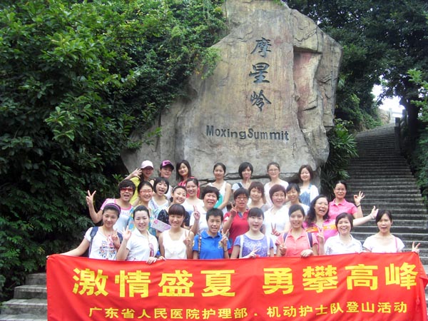 为丰富机动护士的业余生活,为机动护士互相沟通、交流提供平台,增进与护理部人员的交流,护理部于2011年7月9日组织机动护士以“激情盛夏,勇攀高峰”为主题的登山活动。