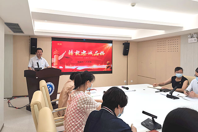 2021年6月18日,机关第一党支部组织了党史学习教育主题党日活动,医院党委常委、副院长卢永刚同志以“铸就忠诚品质”为题,为党员同志讲授了一堂主题鲜明、内涵深刻的专题党课。机关第一党支部全体36名党员参加。活动由支部书记谢锦绍主持。