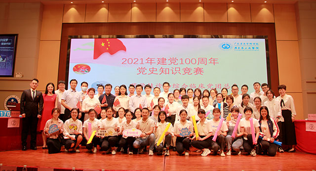 2021年4月27日晚,为庆祝建党百年华诞,弘扬党的优良传统,药学技诊与综合临床党团总支在多功能厅联合举办“学党史、知党情、勇担当”为主题的党史知识竞赛活动。本次活动特别邀请院党委副书记何斌,党委常委、副院长李欣和党委办公室主任郭莉莉等出席。药学技诊与综合临床党团总支的10支代表队伍同场竞技,200多名党员和团员同志参加。