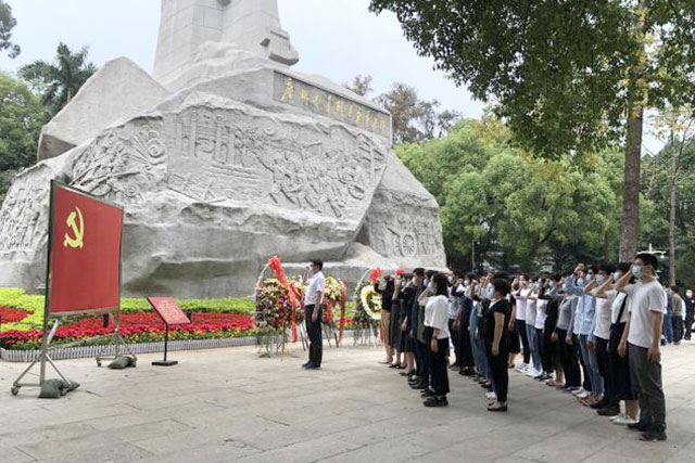 在广州起义烈士陵园纪念碑前,大家重温了广州起义的历史。广州起义是发生于1927年12月11日,张太雷、叶挺、叶剑英等人领导工人、农民和革命士兵举行的反抗国民党反动派的武装起义。经过三天浴血奋战,因敌我力量悬殊,起义失败。这是中国共产党和中国人民继南昌起义、湘赣边界秋收起义之后,对国民党反动派的又一次英勇反击,在国内外引起了巨大的震动。起义军和工农群众英勇战斗、不怕牺牲的革命精神给了中国人民新的鼓舞,在中国人民革命斗争史上写下了光辉壮丽的一页。同时,也为中国革命事业提供了宝贵的经验,保存下来的革命力量继续顽强战斗,成为中国人民解放军的重要组成部分和革命火种。