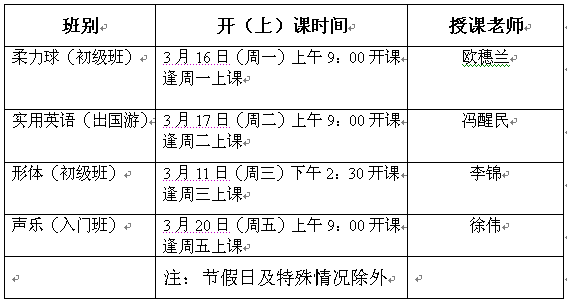 四 、俱乐部具体开(上)课时间以及授课老师如下: