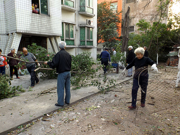当天,老同志们干劲十足,不顾年岁已高,不怕脏、不怕累,与街道人员一道拉绳索、拾树干、打扫垃圾、清理卫生死角,大家干得热火朝天,那种“老夫不减当年勇”的气概油然而生。老同志们纷纷表示:“这样的劳动场面已经很久没见过了!”