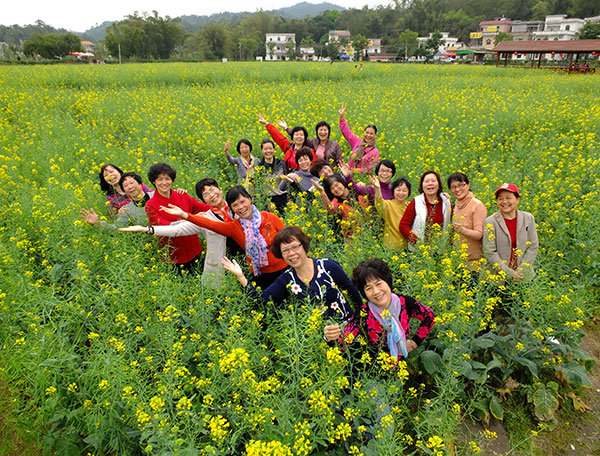 3月9日至10日,伴随着春风,一大早女同胞们准时集合出发,大家的笑颜似乎点亮了春日的气氛。来到红山村,一片片油菜花汇成了黄绿色海洋,春雨中的小村显得朦胧娴静。站在花海的栈桥远眺,山与草的青绿与油菜花的嫩黄交相辉映,沐浴在蒙蒙春雨中,整个画面极为柔和又不乏生机。女同胞们被红山村的美丽景色深深吸引了,在花丛中,她们撑着五彩伞,摆出各种姿势和表情,拍下了许多照片,留住美好的瞬间。随后,大家来到花都湖公园,这是2012年广州市重点工程之一,在设计上充分体现亲水性。走在其中,春意怏然,湖面波澜不惊,犹如明镜,令人心旷神怡。老同志们纷纷赞叹国家对城市和新农村的建设成效,深深感受到大自然的和谐与美妙。