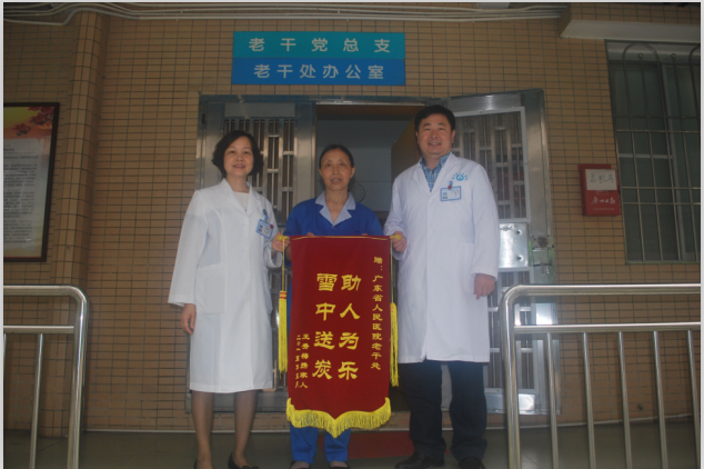 这件事情对于老干处的工作人员来说是多么的平常,实在是微不足道,但是却感动着王姨的一家人。王姨送来一面锦旗,以表达对老干处的谢意。女儿带父亲回四川治病前,特地来到老干处对大家说:“由于妈妈太老实、不识字又不懂讲普通话,全家都不同意她来广州这个人生地不熟的地方工作,怕她被人欺负,但妈妈每次都说这里的人对她非常好。我妈妈不是医院的职工,但是,你们却把她当亲人般看待。经过我爸爸看病这件事,我很放心地把妈妈留在这里工作。”现在,一向老实、言语不多的王姨,更加用心的工作,以自己的辛勤劳动默默回报医院。