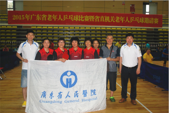 7月10日至13日,“2015年广东省老年人乒乓球比赛暨省直机关老年人乒乓球邀请赛”在广州体育职业技术学院完美收拍。由我院退休老同志朱凤珍、韦粉心、罗群星、丘翠玲、冯锦玲组成的代表队,参加省直机关女子组的比赛,医院工会办公室副主任许光担任教练员。