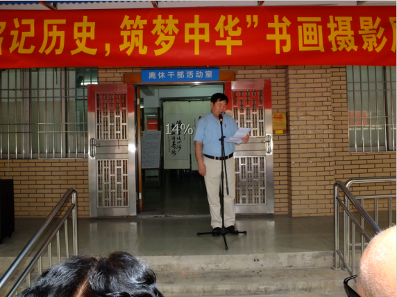 老干处长邓南在主持中说:“为了纪念抗战胜利70周年,重温抗战英雄的铁血情怀,同时展示我院离退休老同志业余文化生活的成果,举办本次书画摄影展意义深远”。