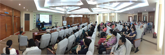 在门诊住院大楼25楼国际会议厅,广东省优秀音乐家宁林老师为老同志开设“音乐与养生”专题讲座,宁老师重点阐述了音乐与养生的关系,通过音乐调节情绪,可以愉悦身心,促进身体健康。宁老师讲座精彩的内容和幽默风趣的语言赢得了阵阵掌声。