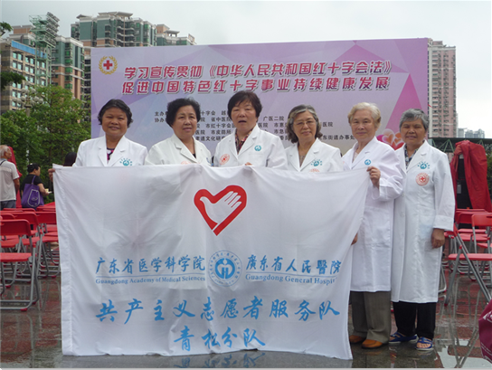 5月7日,由广州市红十字会和越秀区红十字会主办的“学习宣传贯彻《中华人民共和国红十字会法》促进中国特色红十字事业持续健康发展”暨大型义诊活动在越秀区英雄广场举行,我院志愿者青松义工分队积极参加义诊活动。