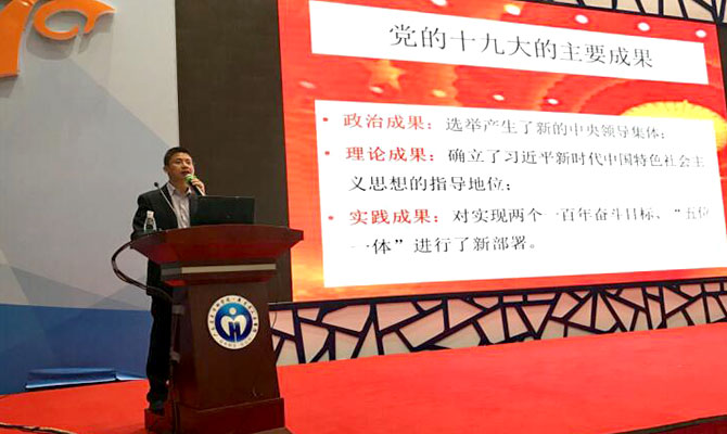 何朝生书记从如何理解十九大的主题与主要成果、理解习近平新时代中国特色社会主义思想、把握中国特色社会主义进入了新时代、理解我国社会主要矛盾的新变化四个方面对党的十九大精神进行了详细解读。