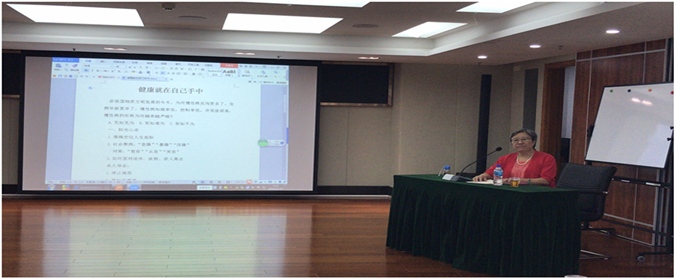 夏玉莲护长现身说法,从一个退休人员结合医务人员的角度阐述健康的相关理念,同时列举了大量的实例,用风趣幽默的语言,从如何保持阳光心态到如何注意安全方面生动地演绎了“健康就在自己手中”的理念;