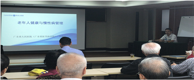 为深入贯彻落实习近平新时代中国特色社会主义思想和创建模范机关活动,践行实施健康中国战略,为人民群众提供全方位全周期健康服务和倡导健康文明生活方式,预防控制重大疾病。受广东省公安厅老干党总支的邀请,2018年11月13日我院老干党总支何朝生、夏玉莲、王育珊和朱文红一行4人到广东省公安厅老干处开展《老年人健康和慢性病管理》健康教育知识讲座。