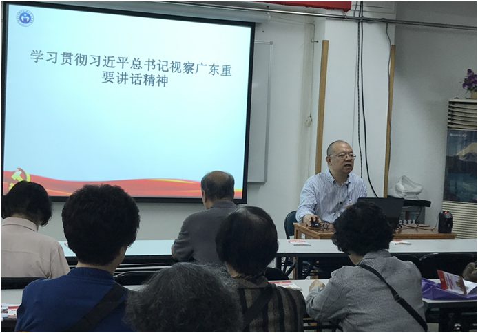 12月5日上午,我院党委常委、纪委书记严晋同志为了让离退休党员能够更好地学习和领会习近平总书记的重要讲话精神,到老干党总支为我院离退休党员讲授了题为《学习贯彻习近平总书记视察广东重要讲话精神》的党课。