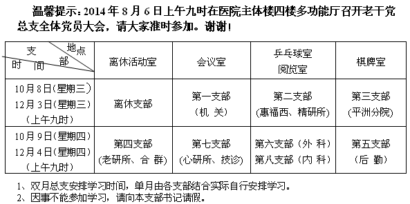 2014年下半年离退休党员组织生活时间安排