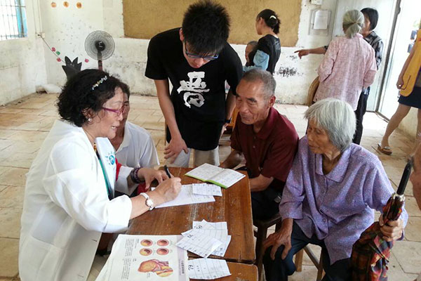 7月27日,我院志愿者青松义工分队一行16人,在老干处邓南处长、党总支副书记钱瑞卿带领下,与广东狮子会生命之光服务队来到从化江浦镇凤一村,为100多名60岁以上村民进行义诊,项目有心血管科、内科、眼科、中医科、测血糖、血压。