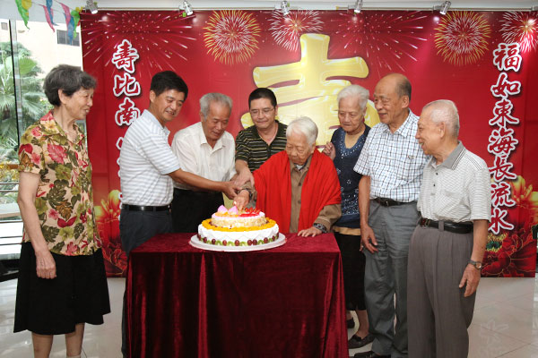 9月22日晚,我院在餐厅二楼为今年70、80、90岁大寿的85位离退休老同志举办集体祝寿会。院纪委书记张念樵、副院长林展翼,党办主任吕惠敏,各党总支书记冯丹宇、杨华章、李肖环、程剑英、冯军东,老干党总支副书记钱瑞卿,机关党总支副书记郭莉莉出席,祝寿会由老干处处长邓南主持。