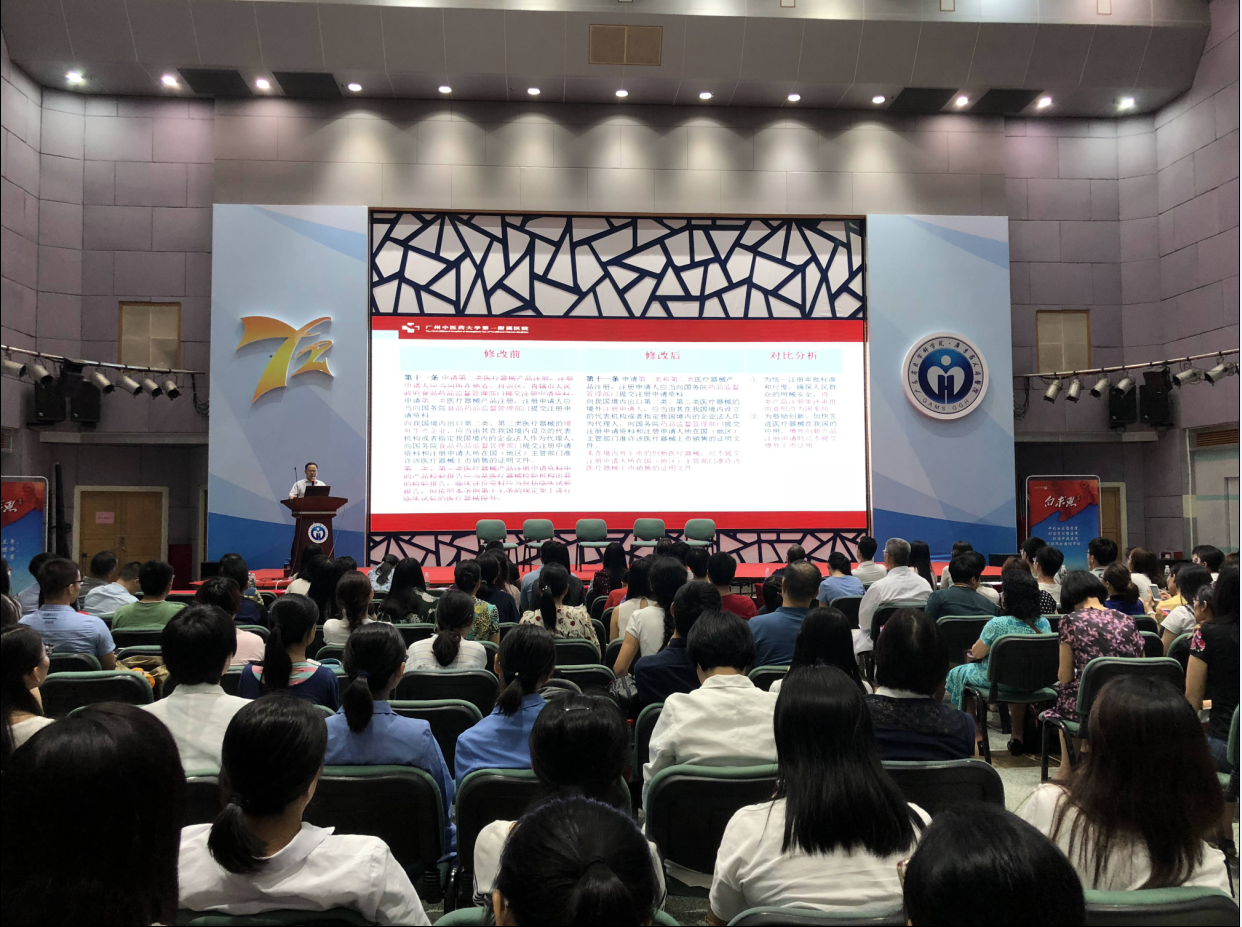 7月12日,由广东省药学会药物临床试验专业委员会主办,我院承办的第97期临床研究沙龙暨广东省人民医院医疗器械临床试验专题培训在我院四楼多功能厅顺利召开。沙龙以“践行广东新发展理念,深化医疗器械创新研发能力”为主题,南方医科大学南方医院药物临床试验中心主任许重远教授以《医疗器械临床试验实施要点与常见问题》为题作了精彩报告,广州中医药大学第一附属医院机构办主任杨忠奇教授对《医疗器械监督管理条例修正案(草案送审稿)》进行了深入解读,并与中山大学肿瘤防治中心临床研究部主任洪明晃教授、广东省食品药品监督管理局安监处刘汉江科长、行政许可处任杰、王天才科长一起就如何规范医疗器械临床试验管理,临床试验机构如何发挥广东优势进行了充分探讨。全省GCP同行近三百人参会,与会者就广东省医疗器械创新研发的机遇与挑战做了充分讨论,互动环节气氛热烈。