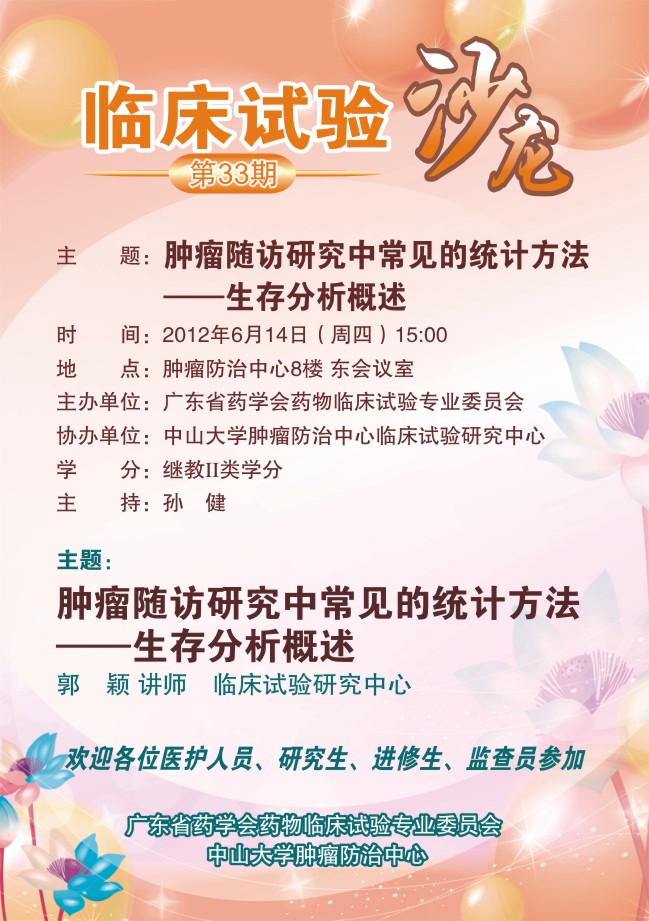 [转发]中山大学肿瘤防治中心第33期临床试验沙龙通知