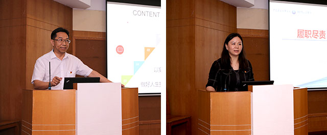 纪检监察处处长刘宏伟作《纪律挺在最前面》专题报告。他从处分所依据法律法规、反腐败斗争形势、以案说纪以及人生抉择等方面,结合现实案例,介绍当前卫生系统以及我院的相关纪检情况。纪检监察处副处长张容作《履职尽责,护航医院》专题报告,她介绍了我院纪检工作以来建章立制,强化制度建设,聚焦监督,提升实效,以日常阳光用药公示,“三剑合一”以及一系列专项成果,强调纪检工作要纪律约束有硬度,批评教育有力度,组织关怀有温度。