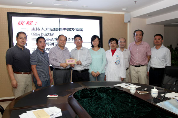 会上,崔建星副书记代表工会发言,再三叮嘱援疆干部要保证两个“安全”,一是政治安全,二是人身安全。省卫生计生委高度重视,受骆书记委托,黄伟彬副处长代表省卫计委人事处感谢省医从政治高度出发,选拔出这么多优秀的干部援疆,一直以来,省医的援疆干部担当的都是最艰巨、最繁重的任务,也是最受新疆人民群众欢迎的援疆队伍。希望何朝生同志不辜负省委组织部的期望,不辜负自己所讲、不辜负耿书记重托,尽快融入当地民族风俗,不仅发挥专业优势,更要团结一切可以团结的力量,做好医院管理工作,担当好广东援疆医疗队队长及新疆喀什地区第一人民医院副院长一职。并转达了省卫生计生委领导的指示,将继续全力支持援疆干部工作。