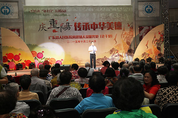 10月21日,正值重阳日,医院在多功能厅举行以“庆重阳,传承中华美德”为主题的敬老节活动,医院党委副书记崔建星、纪委书记张念樵;原医院党委书记申小丛、王归圃、党委副书记周美容等老领导;大东街党办主任李振彦;医院职能处室负责人、党总支书记等应邀出席,共约600多名离退休老同志参加了本次活动,老干处处长邓南主持会议。张念樵书记致辞时充分地肯定了老前辈们在我院的建设和发展中起到重要的作用,希望老同志身体健康、延年益寿,并嘱咐年轻一辈对老同志要保持敬重之心、倾注关爱之情、多做务实之事。接着,医院对我院积极开展“敬老文明号”创建活动的东川门诊部等4个优秀创建点进行表彰奖励,以激励她们在岗位上做出更多为老、惠老、便老的工作,大力弘扬尊老敬老的光荣传统。另外,还颁发了老干优秀团队奖、关工委优秀组织奖、优秀授课老师、“老有所为、老有所乐”积极分子,以表扬老同志们在量力而为的基础上,积极发挥余热,展现出“莫道桑榆晚,为霞尚满天”的精神风采和生活态度。