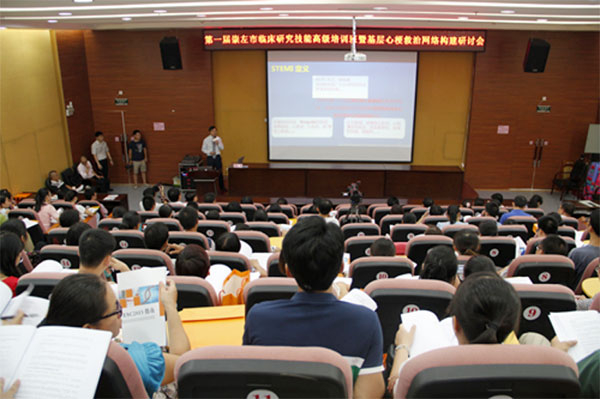 9月24日,由广西壮族自治区崇左市人民医院主办,我院心研所心内科协办的崇左市第一届临床研究技能高级培训班暨基层心梗救治网络构建研讨会在崇左市人民医院门诊四楼多功能会议厅举行。来自崇左市7县市区人民医院、乡镇卫生院、崇左市人民医院的医技人员共180名参加了研讨会。心内科陈纪言主任委派支援该院的刘勇医生担任主讲,用深入浅出的语言为学员们讲授了心肌梗死不典型心电图识别、基层心梗救治网构建关键技术、心梗数据库构建与持续医疗质量改进三大专题内容,为欠发达的崇左民族地区从事心血管病诊治的医师同仁们提供良好的交流平台,也为构建该区域心梗救治网络打下良好基础,研讨会由崇左市人民医院党委书记吴晓秋和心血管内科主任李星阳主持。