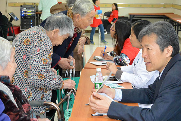 眼科张良主任、费文雷等专家们耐心地听老人们讲述自己的病症,结合眼健康体检结果,为一些需要眼部用药的老人开具处方,还为一些长期用药的老人调整了治疗方案,为需要及时手术治疗的老人给出了中肯的建议,并指导老人注意健康的生活方式,比如:少看电视、少看小字号的书报、少在暗光下用眼、定时休息,定期检查眼睛等等。