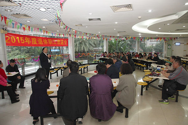 1月15日,医院于职工餐厅二楼举办了2015年度退休职工欢送会。光荣退休的56名职工,齐相聚,叙友情,共盼百年强院省医梦。党委书记耿庆山、纪委书记张念樵、人事处、老干处等职能部门负责人和各片总支书记出席会议。