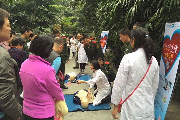 当天的活动还有一项重要内容——心肺复苏技术(CPR)培训。这也是我院庄建院长在今年两会上的呼吁——在高中生和大学生中普通CPR。