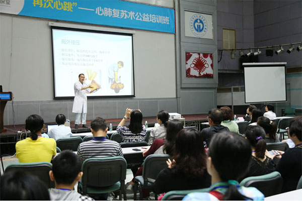 我国每年心源性猝死人数约54.4万人,居全球之首。由于救护人员无法及时赶到现场,市民不懂常规急救知识,我国心脏骤停的抢救成功率极低,能够抢救存活的患者不到1%。为此,我院庄建院长在全国人呼吁普及心肺复苏术(CPR)。为让更多的人学会CPR,4月17日上午,心内科心脏康复区在主体楼四楼多功能厅举办“再次心跳”心肺复苏术公益培训班,免费为社会各界人士提供学习机会。