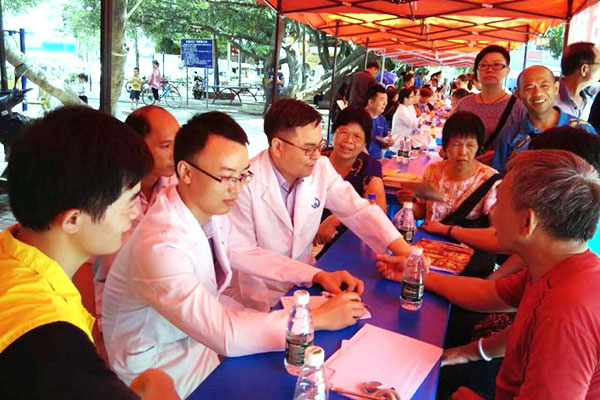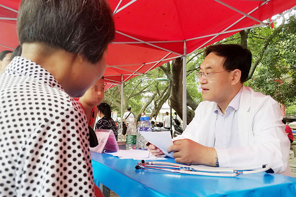 义诊团队经过2小时的车程到达目的地,此时已是烈日当空,气温已高达35℃,当地群众得知广东省人民医院的名医在自家门前开诊,纷纷前来咨询就诊,专家们看到早已守候在红旗广场的群众如此迫切的情景,来不及喝水便马上给群众看起病来。群众自觉有序的在专家面前排起了长龙。很快,省医的各位“大咖”就被群众围个密不透风……群众陆陆续续地拿着专家们的处方,一副心满意足样子。有一位就诊的老人家小心翼翼地把医生开好的处方妥妥地放在腰包里,对我们义诊队员说:省医专家一号难求,现在却是名医千里迢迢到来,让我们偏远的群众都看得起名专家,真是我们的福音!