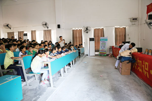 当天下午,队伍兵分两路,医疗队继续留守在镇政府大厅为村民义诊,张念樵书记则带领关工委的相关老同志以及心理科的杨静静和急诊科的周浩等同志赶赴横石水中学为500名中学生送上价值5000元书籍以及心理健康和急救知识的课程。