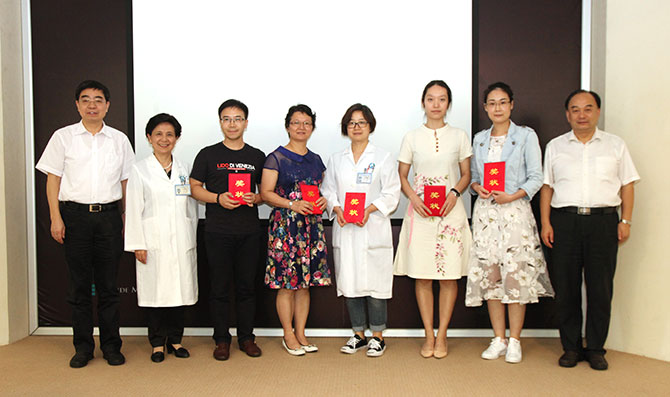 教诲如春风,师恩似海深,沐浴着9月的金风,品味着鲜花的芬芳,迎来了第32个教师节。为向广大教学工作者表达节日问候,我院于9月7日下午在主体楼国际会议厅举行了教学工作表彰奖励大会。大会由科教处陈向阳处长主持,耿庆山党委书记、王启仪副院长、吴书林副院长出席,科教处和人事处等相关职能处室负责人、教研室主任、各教研组组长、临床科室教学秘书、带教老师及在院进修生、实习生等共100多人参加会议。