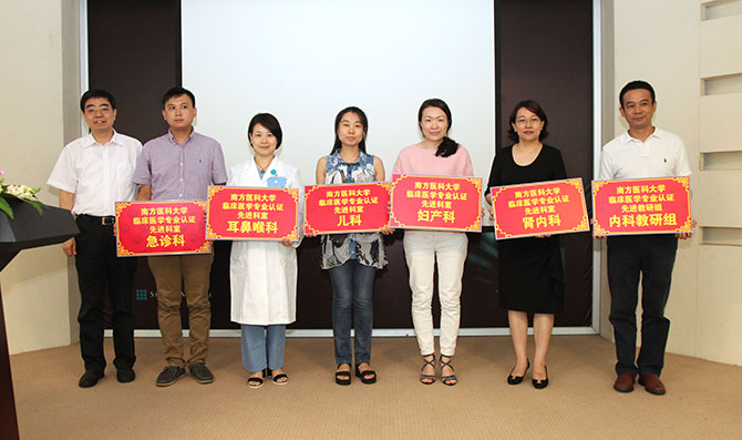 耿庆山党委书记、王启仪副院长、吴书林副院长等领导分别为获奖的教研组、科室及优秀带教个人的代表颁发了奖状。在颁奖后的总结发言中耿书记一方面强调了医务人员在临床教学过程中要做好为人师表,并且要注重将科学技术与人文医学紧密结合,才能培养出德艺双馨的医学人才;另一方面耿书记从医院发展的层面和大家探讨了如何推动医科院的发展和建设,增强我院的综合实力与竞争力。最后,内科教研组廖山婴代表优秀教研组向大家分享了内科临床教学管理经验,心儿科孙凌医生代表优秀教学个人发言,亲身讲述了自己是如何踏上从医之路的点滴,表达了对教师这个神圣职业的敬畏以及对临床教学事业的热爱。