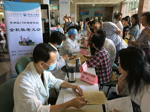 10月16日上午,在重阳佳节来临之际,老研所门诊部在我院东川门诊一楼大堂举行“金秋敬老”大型义诊活动。