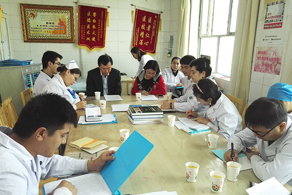 肾内科一行4人到达喀什后,马上前往肾病科,向科室捐赠专业书籍,随后,史伟和梁馨苓到病房查房,参与疑难病例讨论和做介入治疗示范,叶智明和符霞到血液净化中心交流。