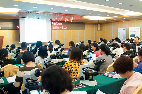 参加本次学习班的病理医生每人一台显微镜,授课老师从理论到实践进行教学,学员们通过大量教学片的学习,提高了解决疑难病例的能力。本次学习班是2016年CSCCP组织的6场培训中规模最大的一次,参加培训的病理医生完成培训通过考试者,将获得由PQCC、CSCCP颁发的证书。