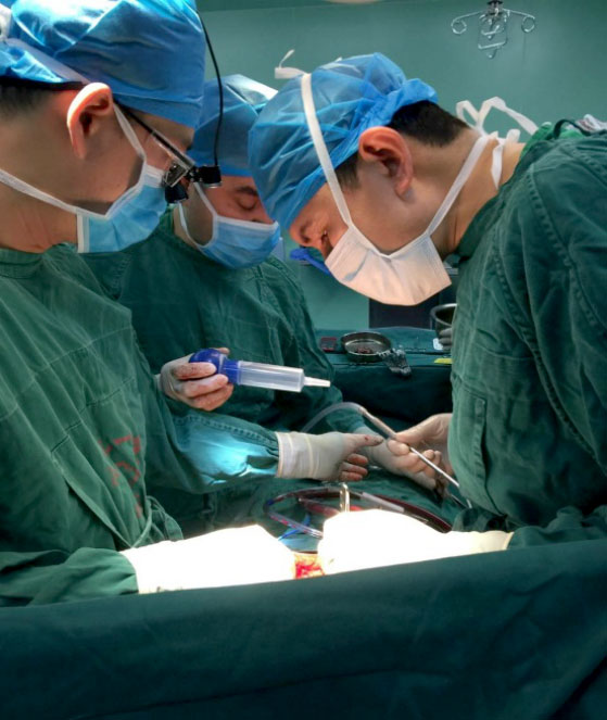 这是一场和时间赛跑的竞赛:全身麻醉、建立体外循环、开胸……阿地力主任、肖飞博士和整个手术团队在迅速而又有条不紊的进行着手术。