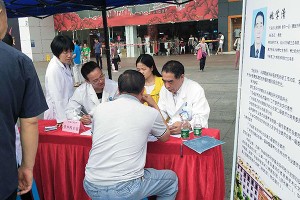 这一幕场景,是我院大外党总支5月5日组织的大外科科室专家志愿者到南海第二医院向基层医生传授精准治疗技术,并携手省医南海医院党委带领团委联合桂城志愿服务队在南海桂城大润发开展义诊活动的一个画面。