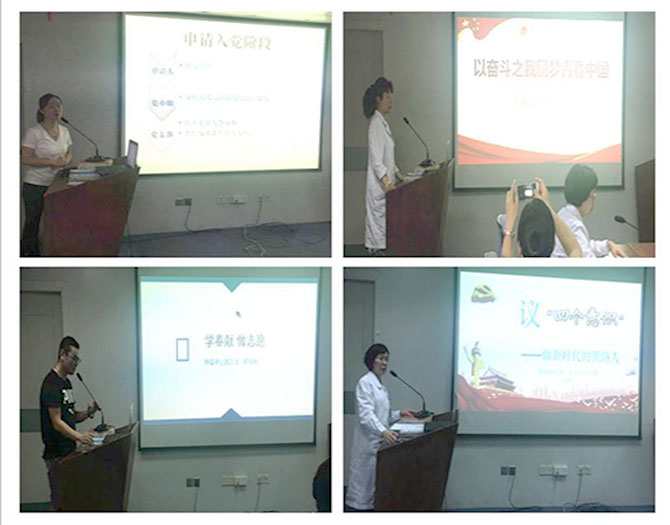 紧接着,第二支部书记潘燚以《以奋斗之我圆梦青春中国》为题,开展学习习总书记在北京大学师生座谈会重要讲话精神。潘书记分别从“学习总书记15金句”、“广大青年既是追梦人,也是圆梦人”、“总书记对广大青年的希望”三方面展开,表明当代青年是同新时代共同前进的一代,既拥有广阔的发展空间,也承载着伟大的使命。面对这个最大的人生际遇和考验,广大青年医务工作者应当有此责任和担当。