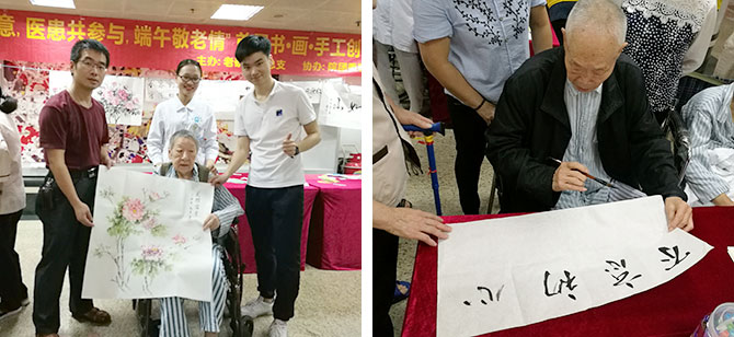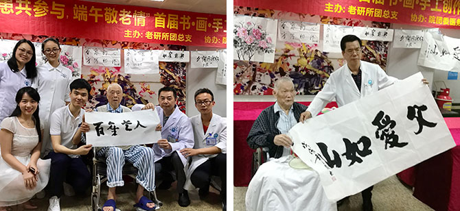 六月中旬即将迎来父亲节和端午节。端午节是中国传统节日之一,带着浓厚的中华传统文化色彩;而父亲节则是一个满怀感恩的节日,是对父辈的付出表达感谢和敬意的节日。为了更好地弘扬中华传统文化、表达敬老爱老的情怀,6月13日下午,在老研所党总支的指导和院团委医务社工室协助下,老研所团总支在东病区门诊大堂举办了一场以"书画辞心意,医患共参与,端午敬老情"为主题的首届书·画·手工创作大赛活动。