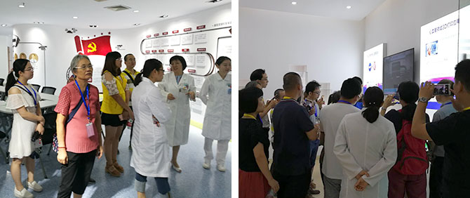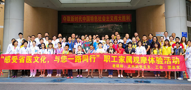 为丰富职工家属的暑期生活,加深其对亲人在医院工作的理解和支持,增强职工和家属的自豪感 、荣誉感,进一步感受省医文化,发扬省医精神,秉承传承医学理念,8月18日上午,老研所及大内科党总支、工会、团总支携手举办了“感受省医文化,与您一路同行”职工家属观摩体验活动。党办吕惠敏主任、老研所、大内科总支冯军东书记、陈惠容副所长和党办臧鑫科长等领导也来到现场,与来自老研所及大内科的六十余名职工家属一起参加了此次活动。
