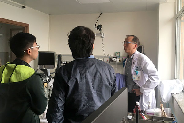 学术交流会结束后,澳门同行参观了甲状腺穿刺手术室,邝建主任介绍了临床操作中的注意事项,分享了实际的案例以及部分手术室的相关操作流程。澳门同行表示我院内分泌科甲状腺穿刺消融团队十分专业,在接触到很多案例。