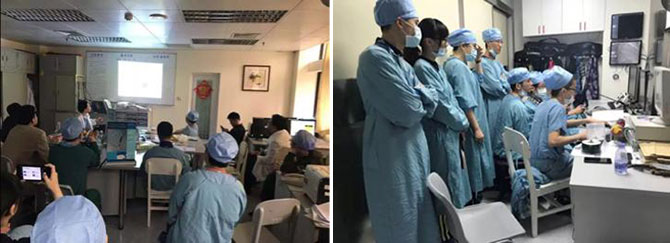 手术间隙,方咸宏主任利用猪心,通过眼观、手摸,现场操练,帮助学员全面熟悉希浦系统的解剖特征,以及手术的技术操作环节,并结合手术实操,详细演示了电极操作等细节。到访学员边亲手操作边学习,收获良多。通过一天的培训,学员无论从植入技巧还是开展手术的信心上均得到巨大的提升,更有学员医生表示培训后的第一个手术日即会安排一例希浦系统起搏手术。
